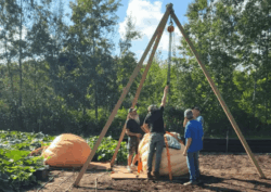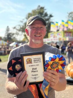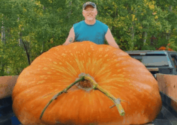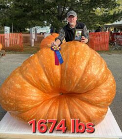 “Esa calabaza habría llegado a las 2,000 libras, pero la lluvia la partió antes de tiempo. Aun así, logré mantener otra que alcanzó las 800 libras.”